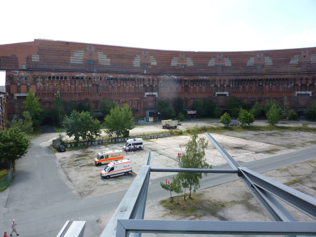 What to do with these sites seems a problem. The Nuremburg symphony orchestra uses a part of the site, as does Nuremburg football club. The ambulances in the photo above were being driven around inside at speed and they were practicing emergency stops in them. The Zeppelinfield where the mass rallies took place had the same thing going on – at once a very serious reminder of previous uses, but also people were practicing ice hockey on rollerblades and driving remote-controlled cars on it. The grandstand with the podium used by Hitler is still intact, although the rooftop swastika was destroyed after the war.