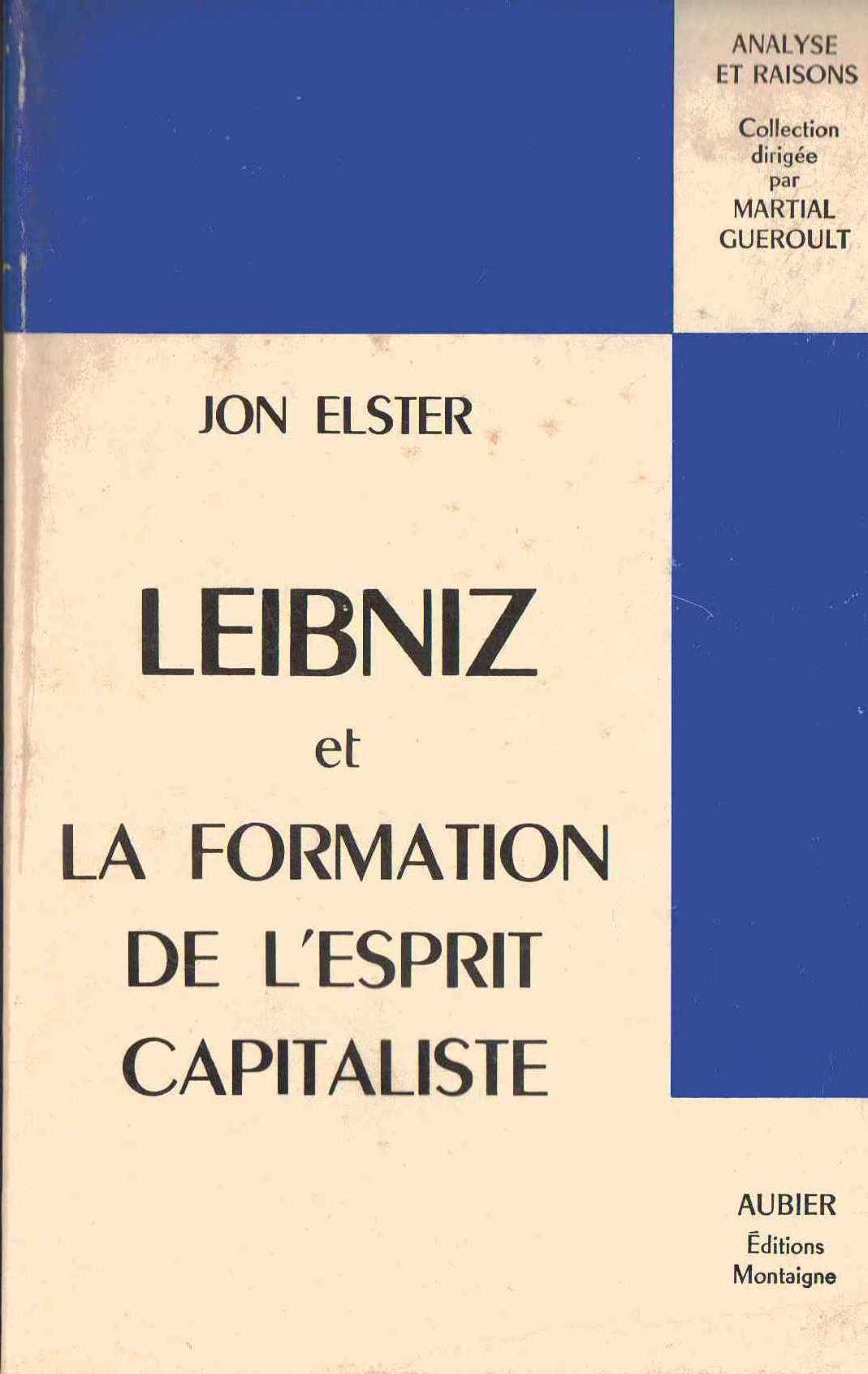 I first read Jon Elster as an undergraduate – Barbara Goodwin recommended his books Sour Grapes and Ulysses and the Sirens in her political theory class. Elster is also known as an analytical Marxist in works like Making Sense of Marx. But I’ve been trying to track down a (reasonably priced) copy of his first book, Leibniz et la formation de l’esprit capitaliste for some time. And now I have one.