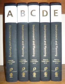 available. As I’ve said before, this collection is intended for libraries. The collection draws from the four Environment and Planning journals, with the first four volumes devoted to a single journal each, and the fifth drawing from all four across general themes. The introduction to Vol D: Society and Space – the only part of the volume that is not available in the journal’s archive – is available as a free download here.