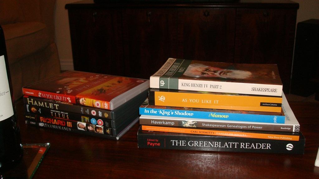 The idea is to use focused readings of a number of plays to illustrate different aspects of the question of territory. So the question of division and the political economy of land is done through King Lear; corporeal territories through Coriolanus; administration of territories maybe through Measure for Measure; conquest through Henry V; succession through the history plays, perhaps Hamlet and certainly Macbeth; contest through Titus Andronicus or Richard III; colonial territories through The Tempest and/or Pericles; maybe enclosure through As You Like It; definitely banishment through Richard II (although there are many others, and Richard II is fascinating for other reasons concerning land too)… The exact makeup is still uncertain, and there is a lot to do, but this is the rough plan.