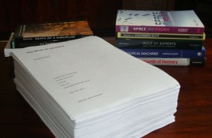 There are a few strange elements of this stage of a book. This is a book that has material I first drafted in 2000 and 2001, and so much of this book I’ve lived with for over a decade. There is a strange sense of finality and a difficulty in letting go. But on the other hand, new sentences or formulations I add now will appear – to the reader – to be the same as material written years ago. And while I’ve thought about, and in many cases spoken about, those earlier elements, the new bits are untested and appear raw. The trick will be – and long has been – to try to smooth all this over and ensure no-one else can see the joins. I was also struck, especially in the notes, at just how much work was embedded in this book. I had to keep the length to 200,000 words inclusive which took a bit of editing – at its longest this book was almost 250,000 words.