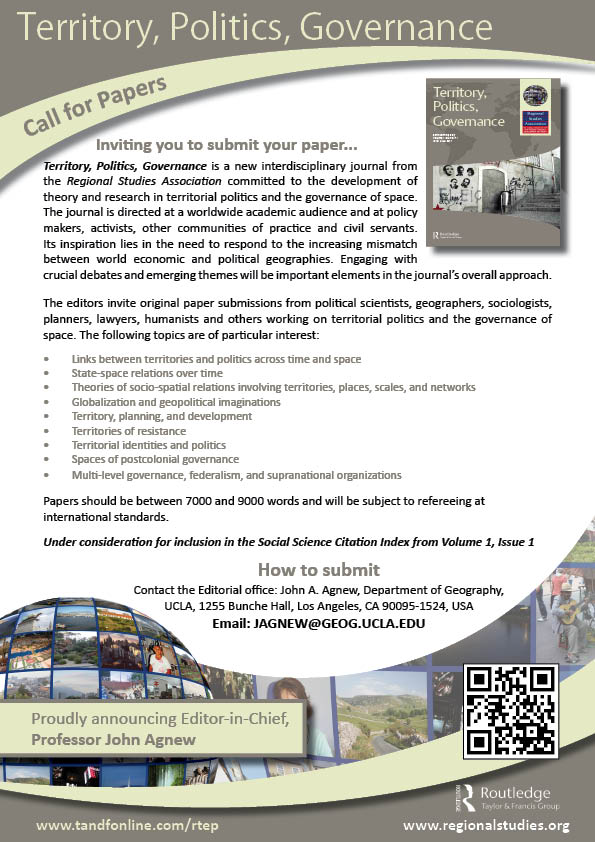 – ‘How should we do the history of territory?’ for the launch issue of the new R.S.A. journal Territory, Politics, Governance. This paper was initially intended for an edited book coming out of The Foucault Effect 1991-2011 conference, but I was told that wasn’t going ahead so I was looking for another outlet. John Agnew asked if I might have something to submit to the journal and, after a round of reviews and some fairly small revisions, has just accepted it.