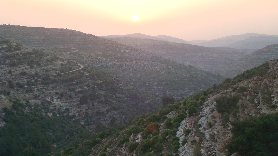 While I was here I attended classes from Nadim and Maha, saw two students present their senior projects, ran a small workshop on journal publishing, and gave a lecture on my work on territory. (I recorded the talk and hope to post the audio here soon. [Now available here.]) I was really impressed by the teaching and the students, and there were some lively discussions in the classes. There were lots of meetings with Nadim, Maha and Mehrene on various aspects of their teaching, the programme, planning and so on, and I met the President of the University, Vice President and Dean. There were also some very nice meals out in East Jerusalem, Ramallah and Beit Jala. The views from the restaurant in Beit Jala were stunning.