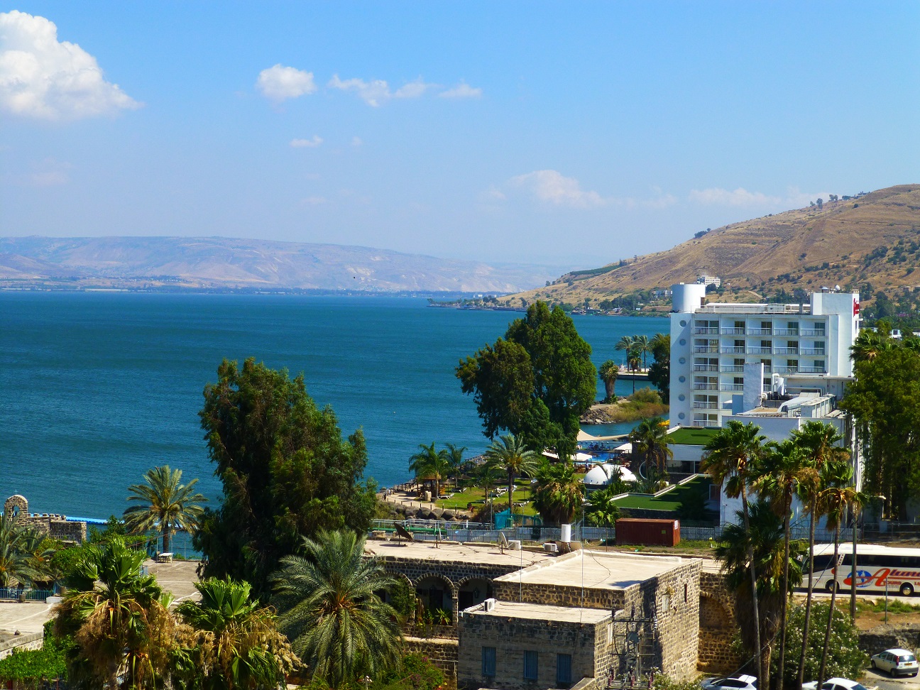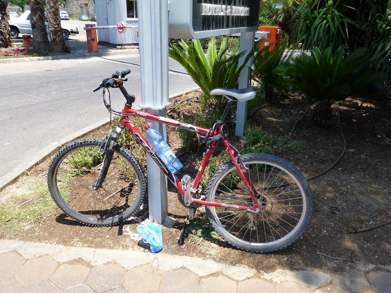 One of the things I did on my recent trip to Israel was to cycle round the Sea of Galilee. A cycle-path is being developed around much of this, but there are some parts where you need to use the main road, and in the north-east corner this takes you quite a way from the Sea itself. As soon as you are away from the shoreline it can ramp up quite a bit. The Sea is really a lake, the freshwater lake with the lowest elevation in the world – the Dead Sea to the south is lower, but of course isn’t freshwater. I hired a bike from a local hostel which was functional but not much beyond – the best of what they had. It was about 40 miles in total. I did this fairly early one morning, between 8-11am, to try to avoid the worst of the heat.
