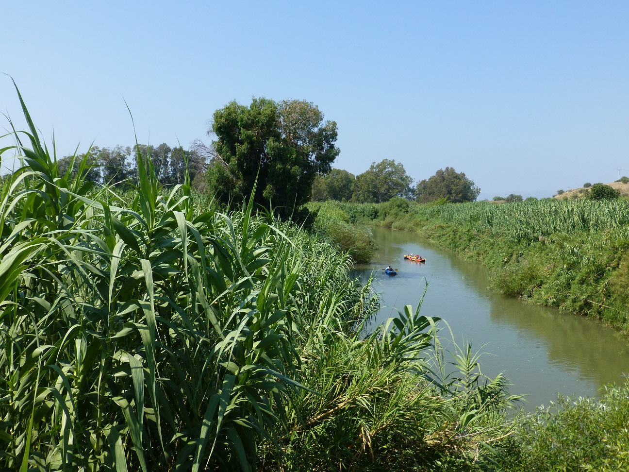 It’s a fascinating route. The wildlife is plentiful – herons, egrets, hoopoes, lizards, etc.; the views are great; and you really get a sense of the complicated interrelations of place and politics here. (I’ve long felt the best way to get to know an area is by bike – you can cover so much more ground than by foot; you appreciate the physicality of the terrain in a new way; and see much more than doing it by car.) On the east side, you cross into the Golan, through previously demilitarised areas between Israel and Syria, and for quite a stretch alongside a minefield. You cross the River Jordan twice, in the north and the south, and even though I’d been prepared for it, the diminutive scale is still a shock. To the south there is the first kibbutz at Degania Alef (‘Wheat of God’), and to the west the tourist town of Tiberias. The area around Tiberias was busy, but for long parts I was the only person around. It’s said to be the most popular tourist cycle route in Israel, but I didn’t see anyone else doing it. I guess late June is not the ideal time for it. The northern shore has a host of churches and other sites associated with the life of Jesus including Capernaum. It would have been good to stop off at more places, but I wanted to keep going before the heat became unbearable.