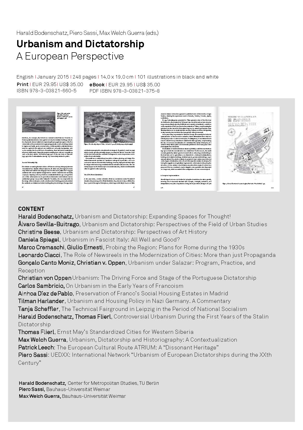 Urbanism and Dictatorship. A European Perspective, the new book of the renowned Bauwelt Fundamente series, is out. The volume has been edited by Max Welch Guerra, Harald Bodenschatz and Piero Sassi, and includes theoretical essays and case studies from Germany, Italy, Spain, Portugal and the former USSR. The material is an excellent opportunity for comparative analysis and the reconceptualization of the sociospatial experience of cities and urbanization under dictatorial regimes.