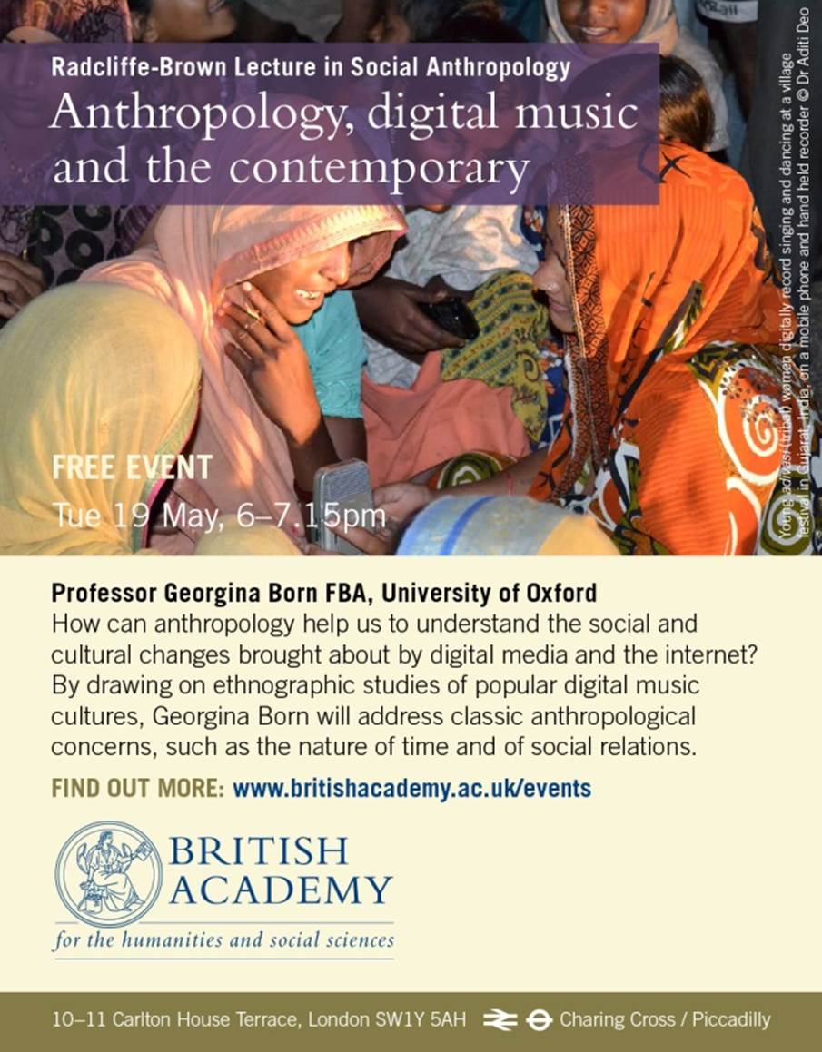 Georgina Born, Radcliffe-Brown lecture in Anthropology, British Academy, 19 May 2015, 6pm