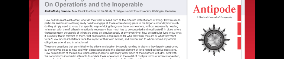 An open access virtual issue linked to the 2016 Antipode RGS-IBG Lecture, by AbdouMaliq Simone.