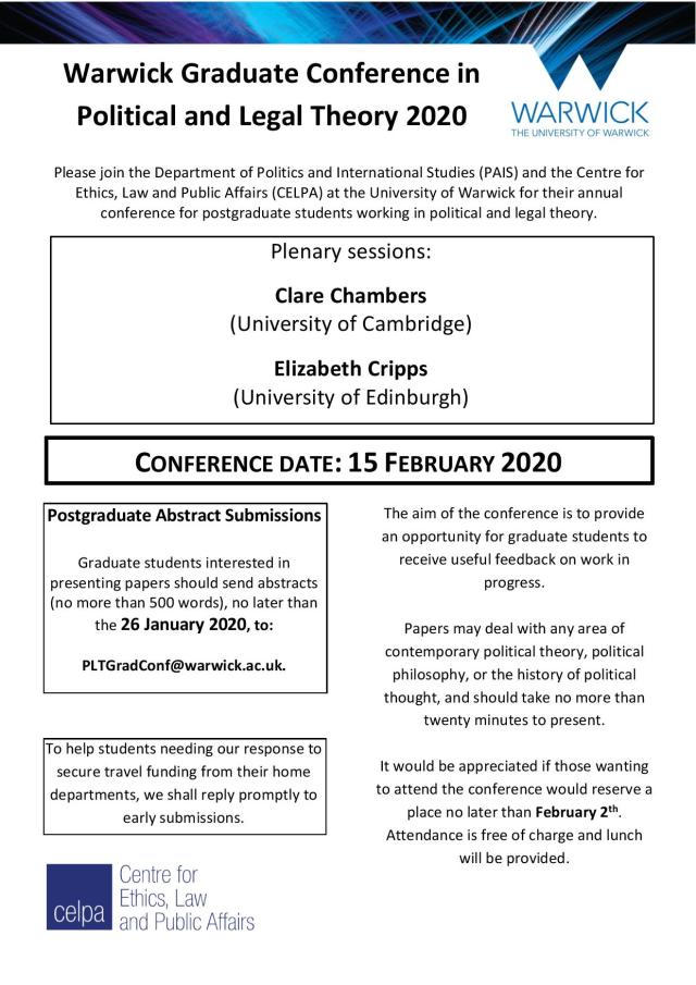 Warwick Graduate Conference in Political and Legal Theory, Saturday 15th February 2020