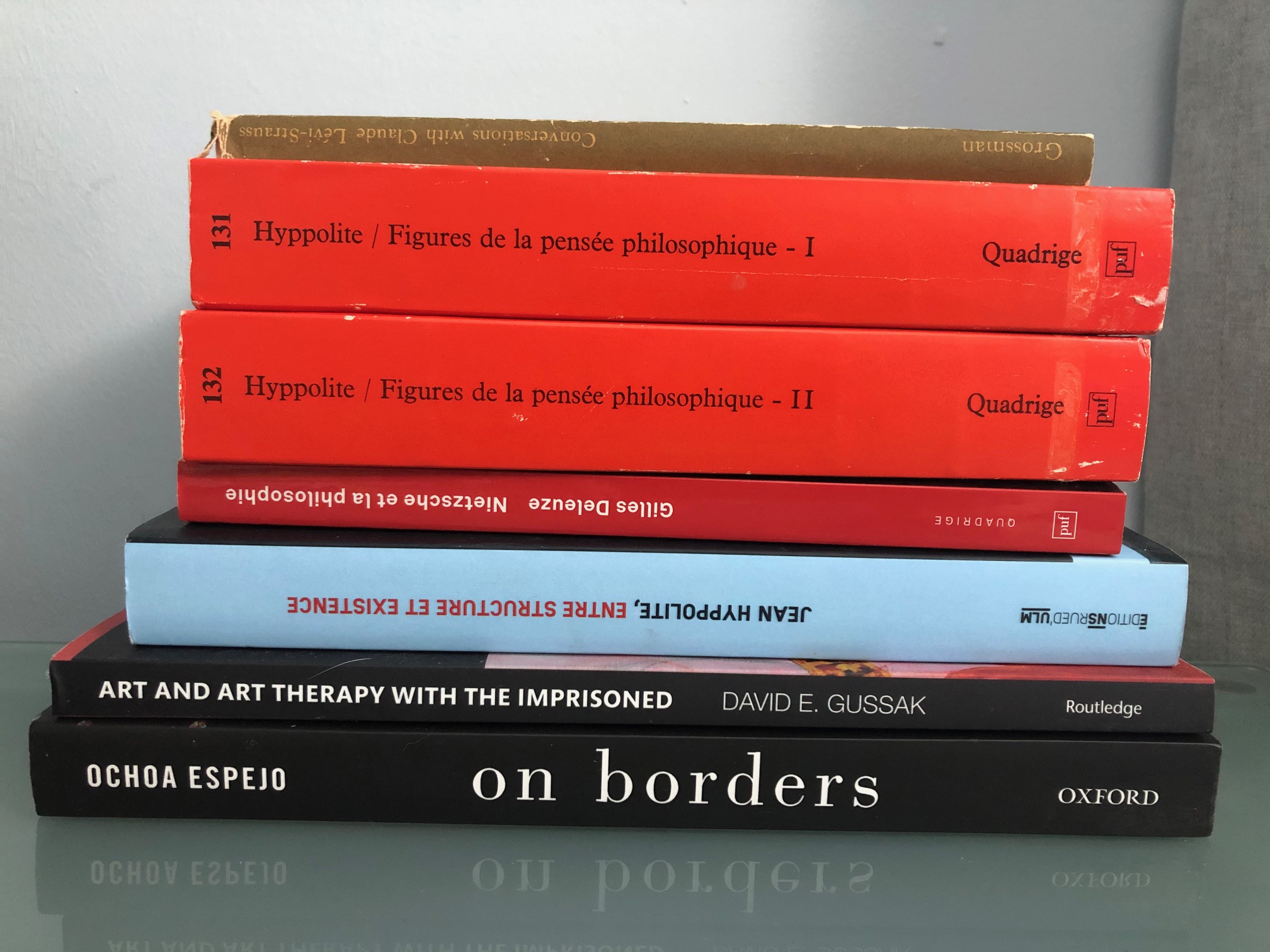 Some books by Lévi-Strauss, Hyppolite and Deleuze, along with Paulina Ochoa Espejo, On Borders: Territories, Legitimacy, and the Rights of Place and David Gussak, Art and Art Therapy with the Imprisoned, sent by the publisher.