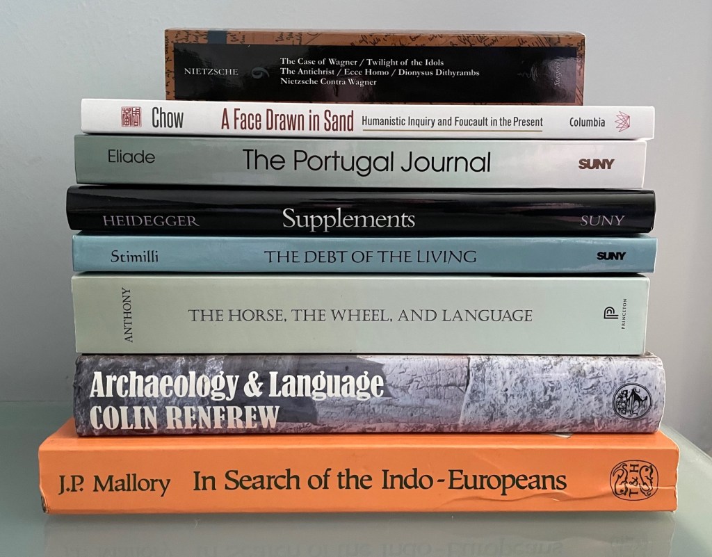 The latest volume in the Nietzsche complete works from Stanford, Rey Chow, A Face Drawn in Sand: Humanistic Inquiry and Foucault in the Present from Columbia, three books from SUNY in recompense for review work, and three second-hand books as background for the Georges Dumézil editing work.