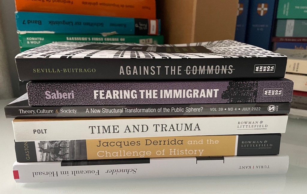 Two excellent books I read in manuscript – Álvaro Sevilla-Buitrago, Against the Commons: A Radical History of Planning and Parastou Saberi, Fearing the Immigrant: Racialization and Urban Policy in Toronto, the new special issue of Theory, Culture & Society, Richard Polt, Time and Trauma: Thinking through Heidegger in the Thirties, Sean Gaston, Jacques Derrida and the Challenge of History, Ulrich Johannes Schneider, Foucault im Hörsaal: Über das mündliche Philosophieren