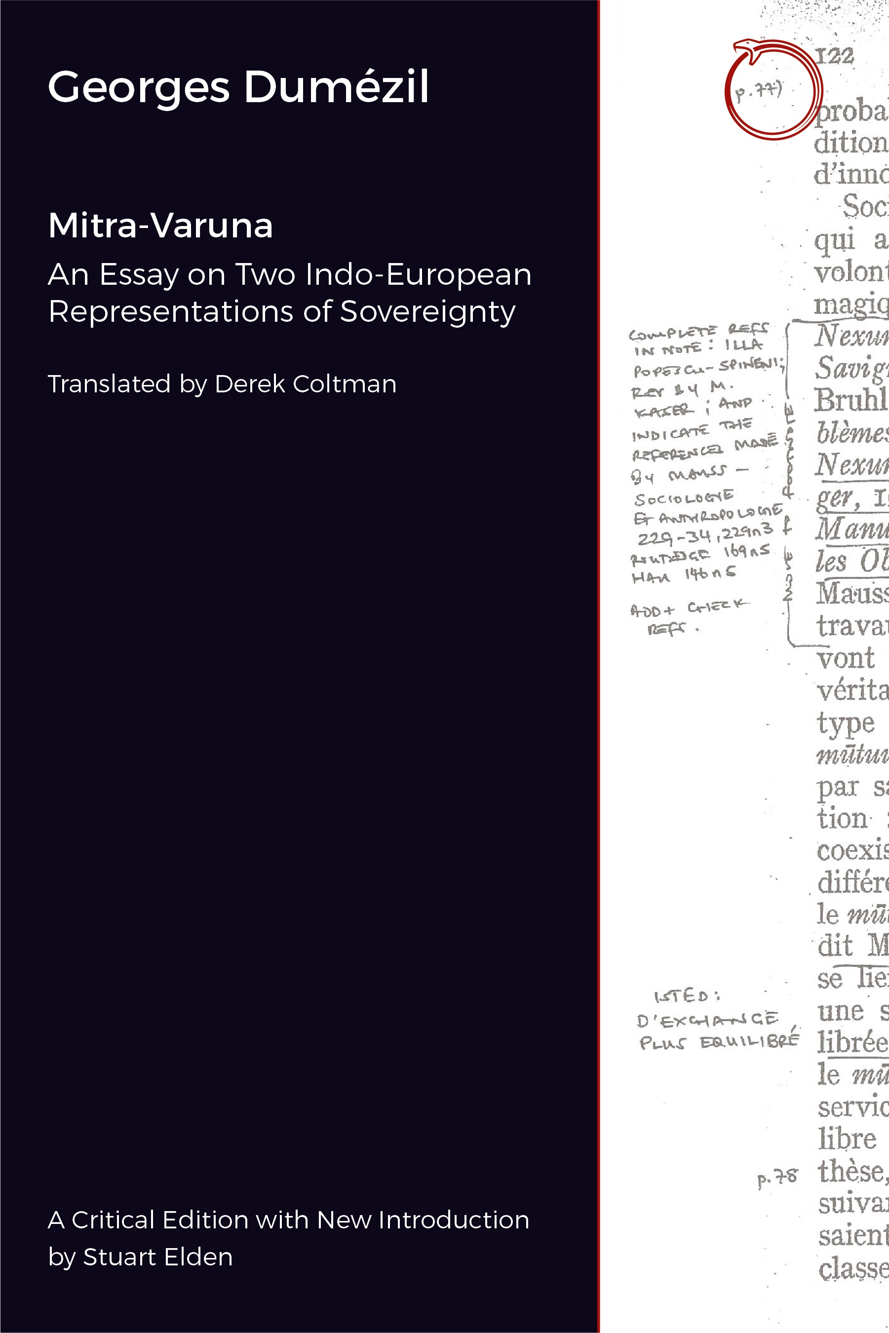 Georges Dumézil, Mitra-Varuna: An Essay on Two Indo-European Representations of Sovereignty, trans. Derek Coltman, ed. Stuart Elden – HAU books, June 2023.