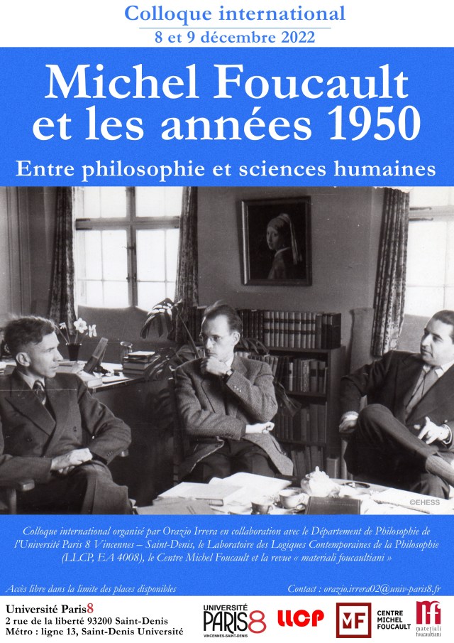 Colloque international organisé par Orazio IRRERA en collaboration avec le Département de Philosophie de l’Université Paris 8 Vincennes – Saint-Denis, le Laboratoire des Logiques Contemporaines de la Philosophie (LLCP, EA 4008), le Centre Michel Foucault et la revue « materiali foucaultiani ».