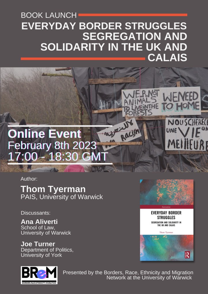1 Response to Thom Tyerman, Everyday Border Struggles: Segregation and Solidarity in the UK and Calais – book discussion, online event, 8 February 2023, 5pm