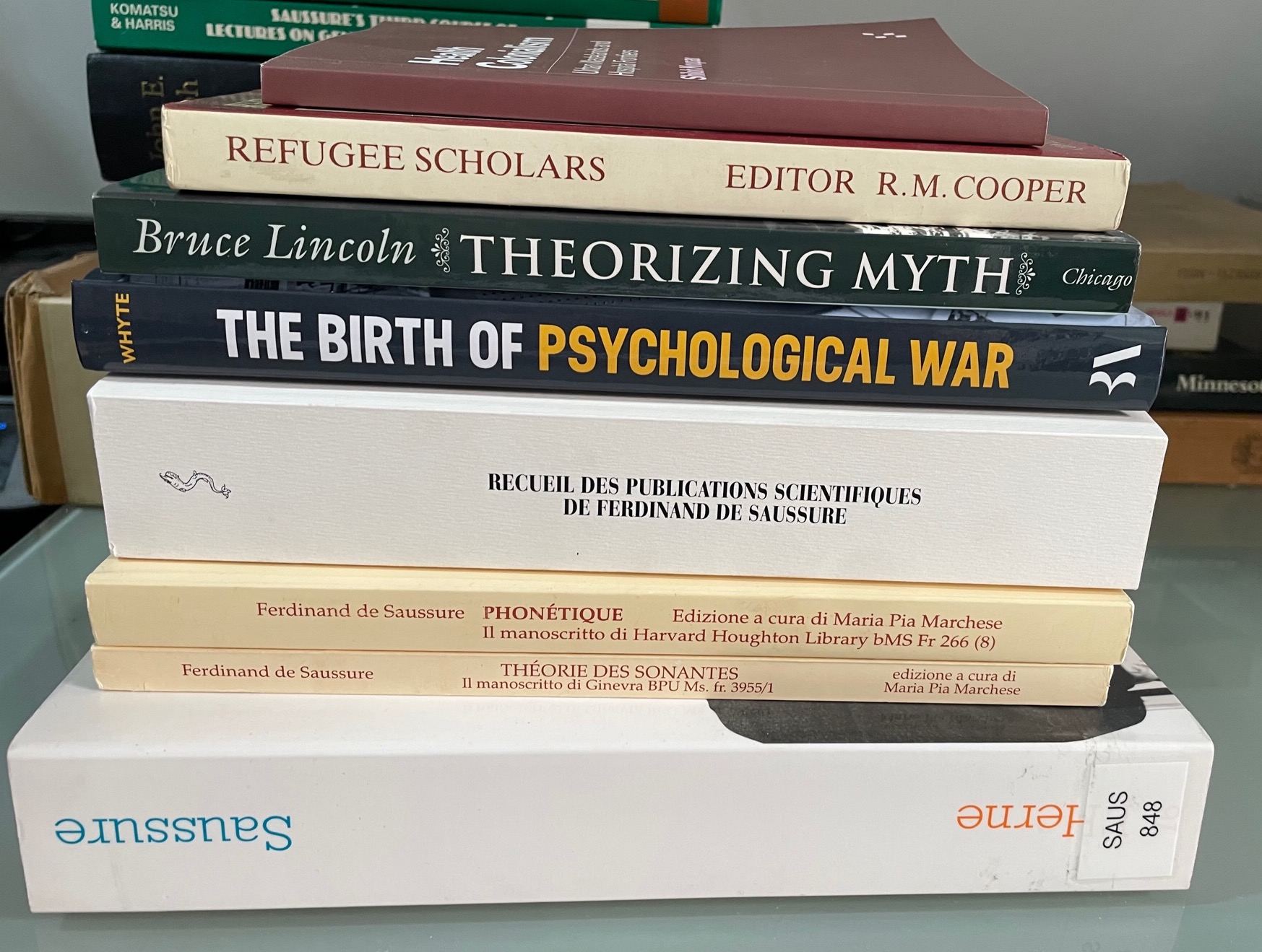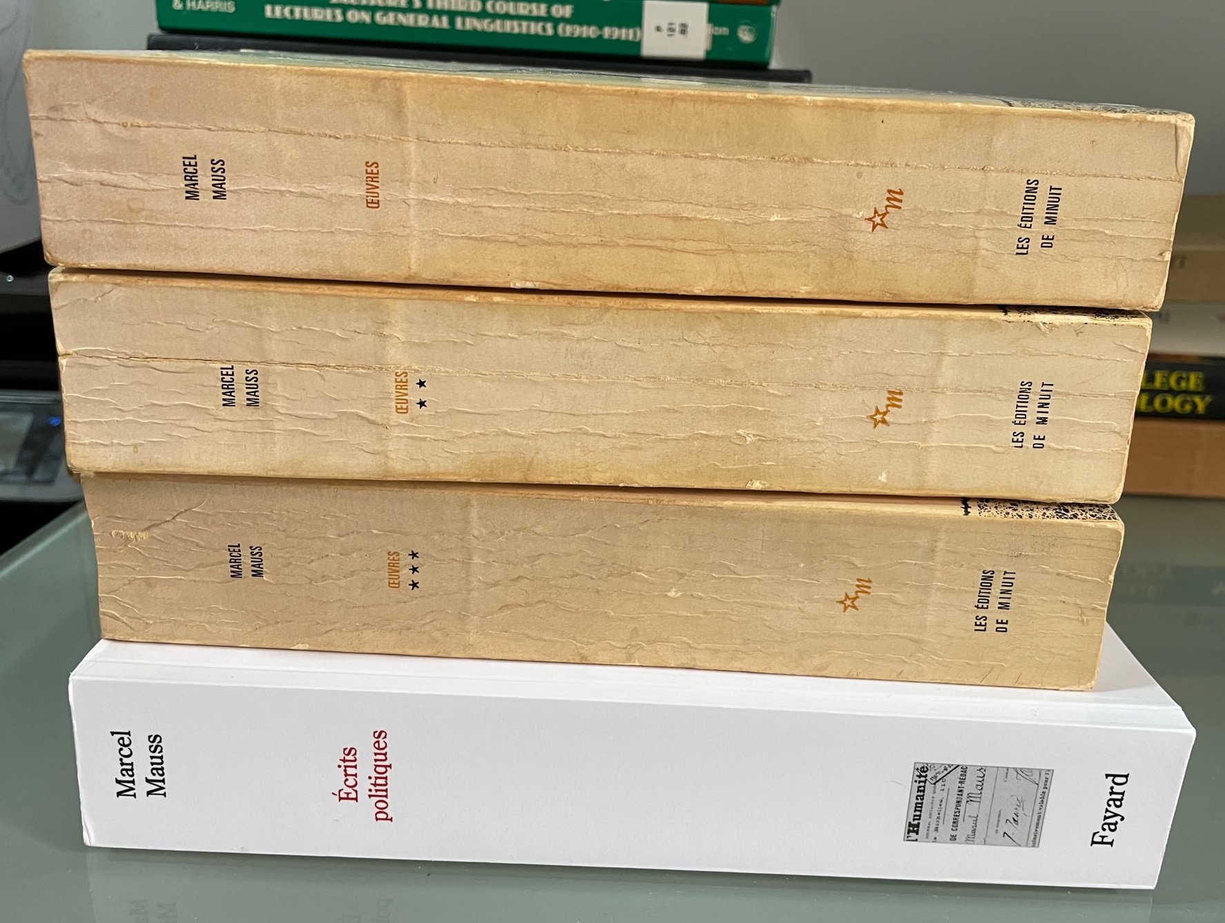 I was pleased to be able to find a complete set of the Marcel Mauss, Œuvres, along with the Écrits politiques; a few books by or about Saussure, including some of his previously-unpublished manuscripts. Other books here include Jeffrey Whyte’s The Birth of Psychological Warfare, which I read in manuscript, and which is open access as an e-book. There’s also a copy of Shiloh Krupar’s Health Colonialism: Urban Wasteland and Hospital Frontiers (also an open access e-book), Emmanuelle Loyer’s biography of Lévi-Strauss (I’d had the Warwick library copy out for months), and the new René Girard collection, All Desire is a Desire for Being: Essential Writings, edited by Cynthia L. Haven.