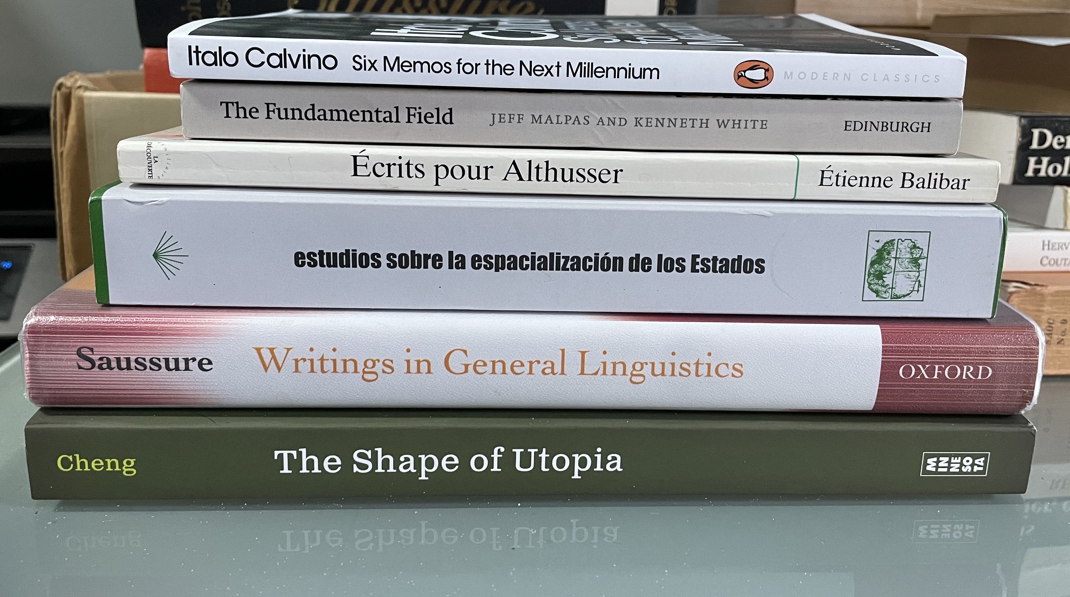 University of Minnesota Press sent the copy of Irene Cheng’s book, and Estudios sobre la espacialización de los Estados has a translation of an old piece by Neil Brenner and me on Lefebvre and was sent by the editors. The collection is available open access here (and the original article here). The other books were bought new or second-hand – I was finally able to find reasonably priced copies of the Saussure and Balibar collections.