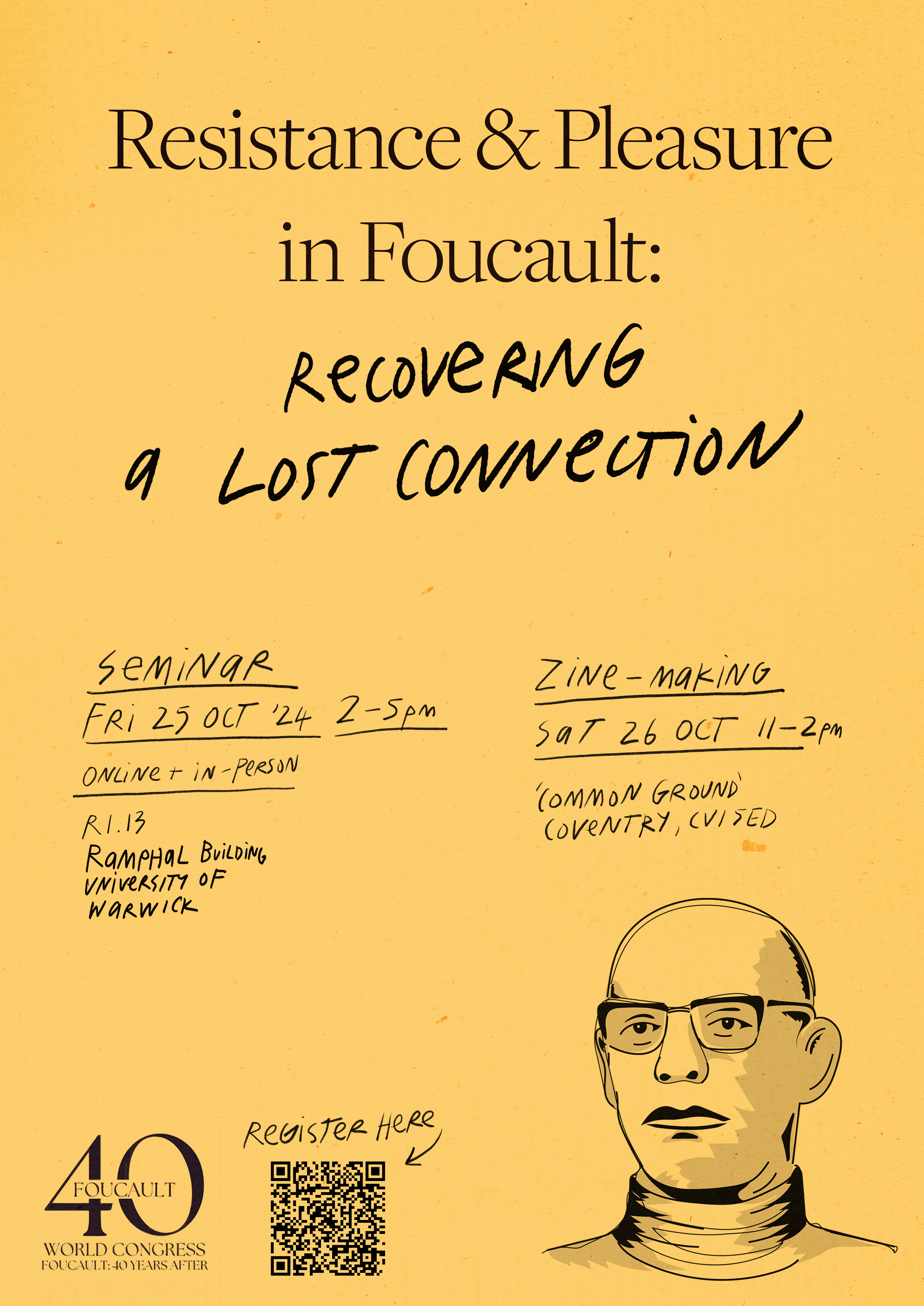 The University of Warwick invites you to a two-day seminar exploring the connections between resistance and pleasure through Michel Foucault’s thought. This seminar is part of the World Congress Foucault: 40 Years After series.
