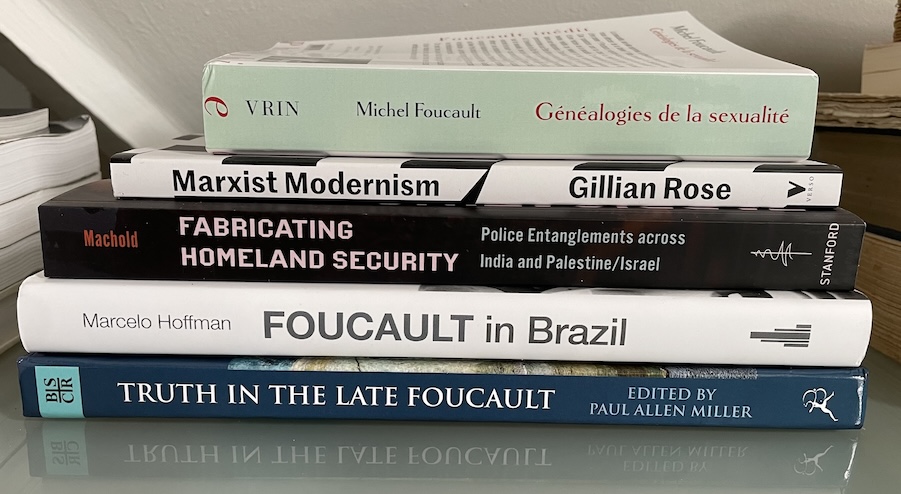 Some books sent by editors or publishers – Michel Foucault, Généalogies de la sexualité, Rhys Machold, Fabricating Homeland Security, Marcelo Hoffman, Foucault in Brazil and Paul Allen Miller (ed.), Truth in the Late Foucault – and Gillian Rose, Marxist Modernism, which I bought.