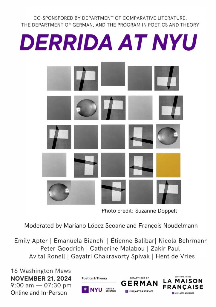Derrida at NYU, 21 November 2024 – online and in-person