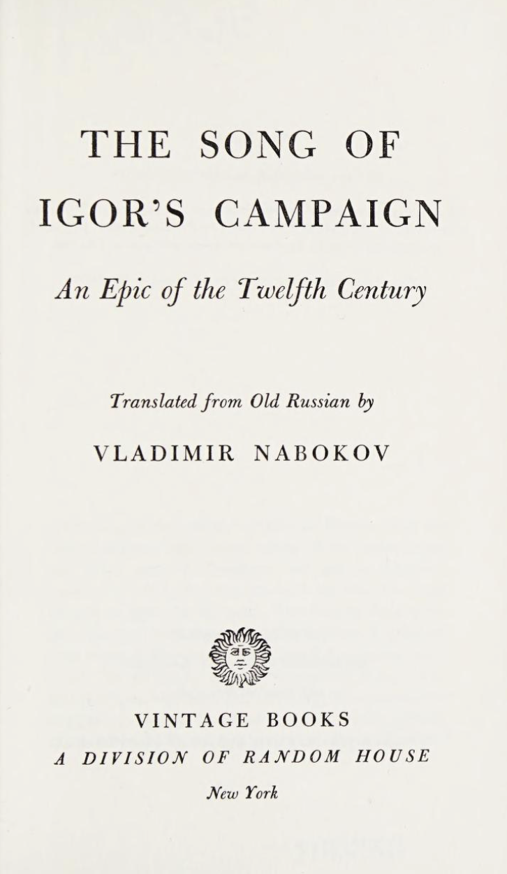 The Song of Igor’s Campaign: An Epic of the Twelfth Century, trans. and foreword by Vladimir Nabokov, London: Weidenfeld and Nicolson, 1960.