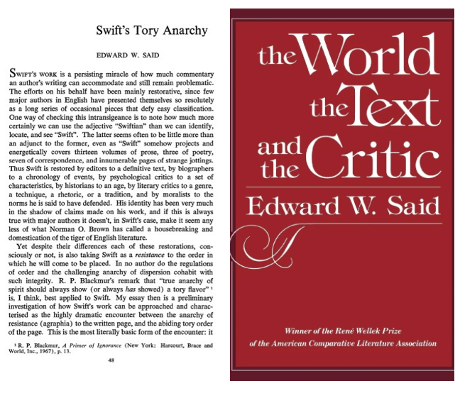 Given all his other achievements, Edward Said’s role in bringing Foucault’s work to an anglophone audience is perhaps understated today. His 1971 essay “Abecedarium culturae”, in Northwestern’s literary journal TriQuarterly was a significant piece on so-called “structuralism”, and the following year’s “Michel Foucault as an Intellectual Imagination” was one of the first articles devoted to Foucault in the United States. It was possibly the first, apart from reviews. “Michel Foucault as an Intellectual Imagination” appeared as the first article in the launch issue of boundary 2, invited by William Spanos. “Abecedarium culturae” was reprinted in Modern French Criticism: From Proust and Valery to Structuralism, a collection edited by Foucault’s host for his visits to Buffalo, John K. Simon. Said’s 1975 book Beginnings has a chapter entitled “Abecedarium culturae” which takes material from both the earlier essays. [continues here]