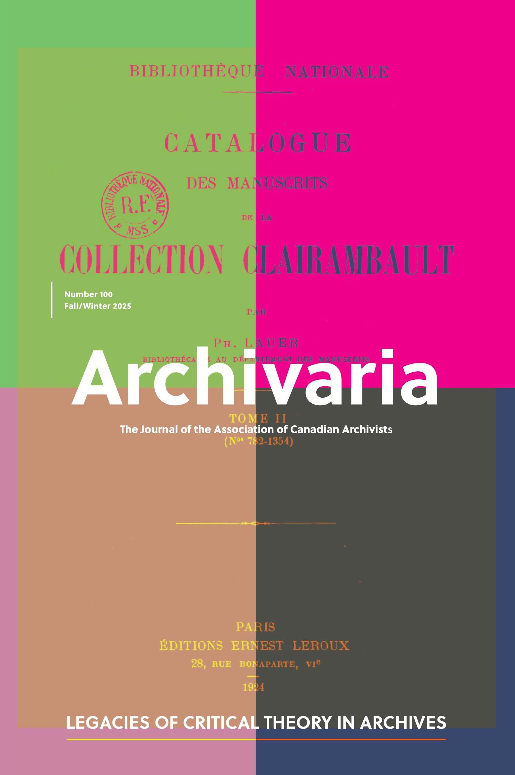 Archivaria 100: Special Issue – Legacies of Critical Theory in Archives (Fall/Winter 2025)