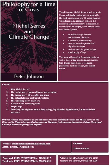 Peter Johnson, Philosophy for a Time of Crisis: Michel Serres and Climate Change – independently published, January 2026