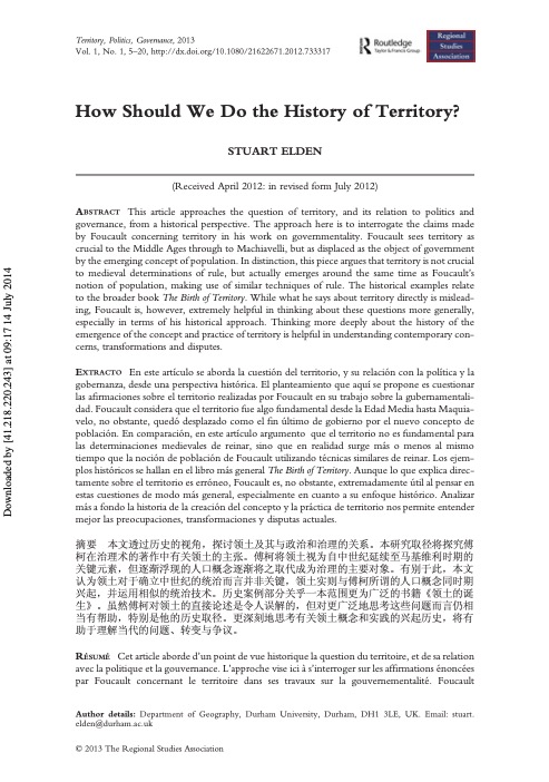 “How Should we Do the History of Territory?” Territory, Politics, Governance 1 (1), 2013, 5-20.