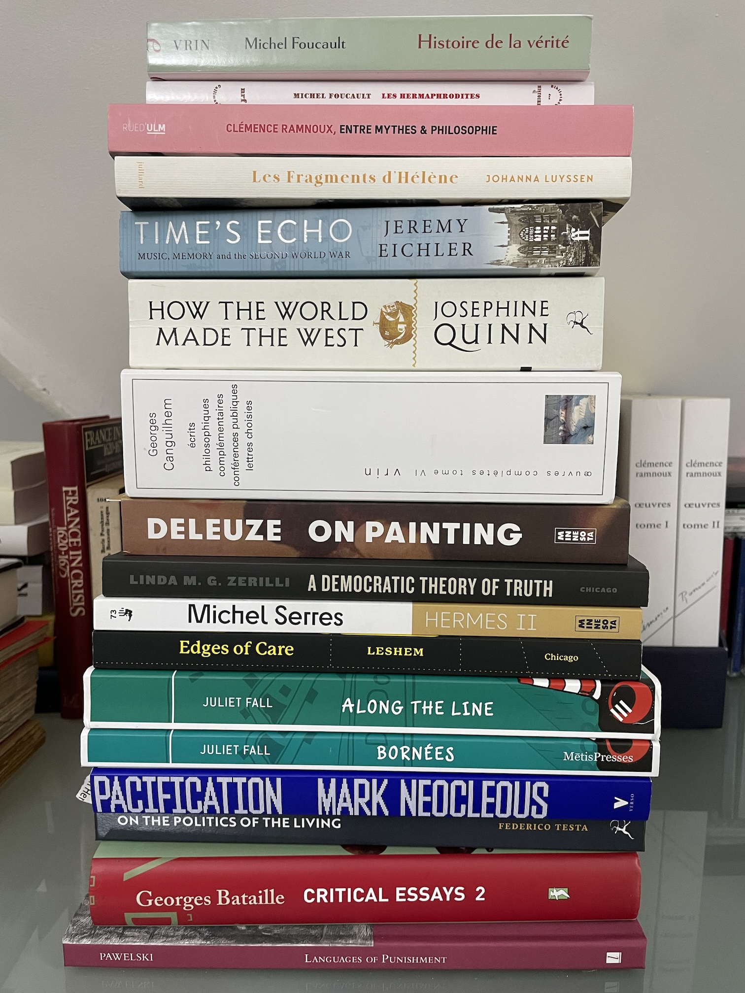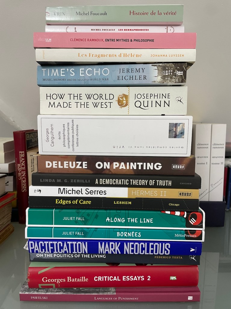 Most of this year was spent working on my very long manuscript Mapping Indo-European Thought in Twentieth-Century France, which is coming together but has been hard work to reach this point. I have shared a few updates on the research and writing here. There has been slow progress from my side on the new edition of Foucault’s Birth of the Clinic, though Marie Satya McDonagh has produced a complete translation of the second edition, and editorial work should pick up pace next year.