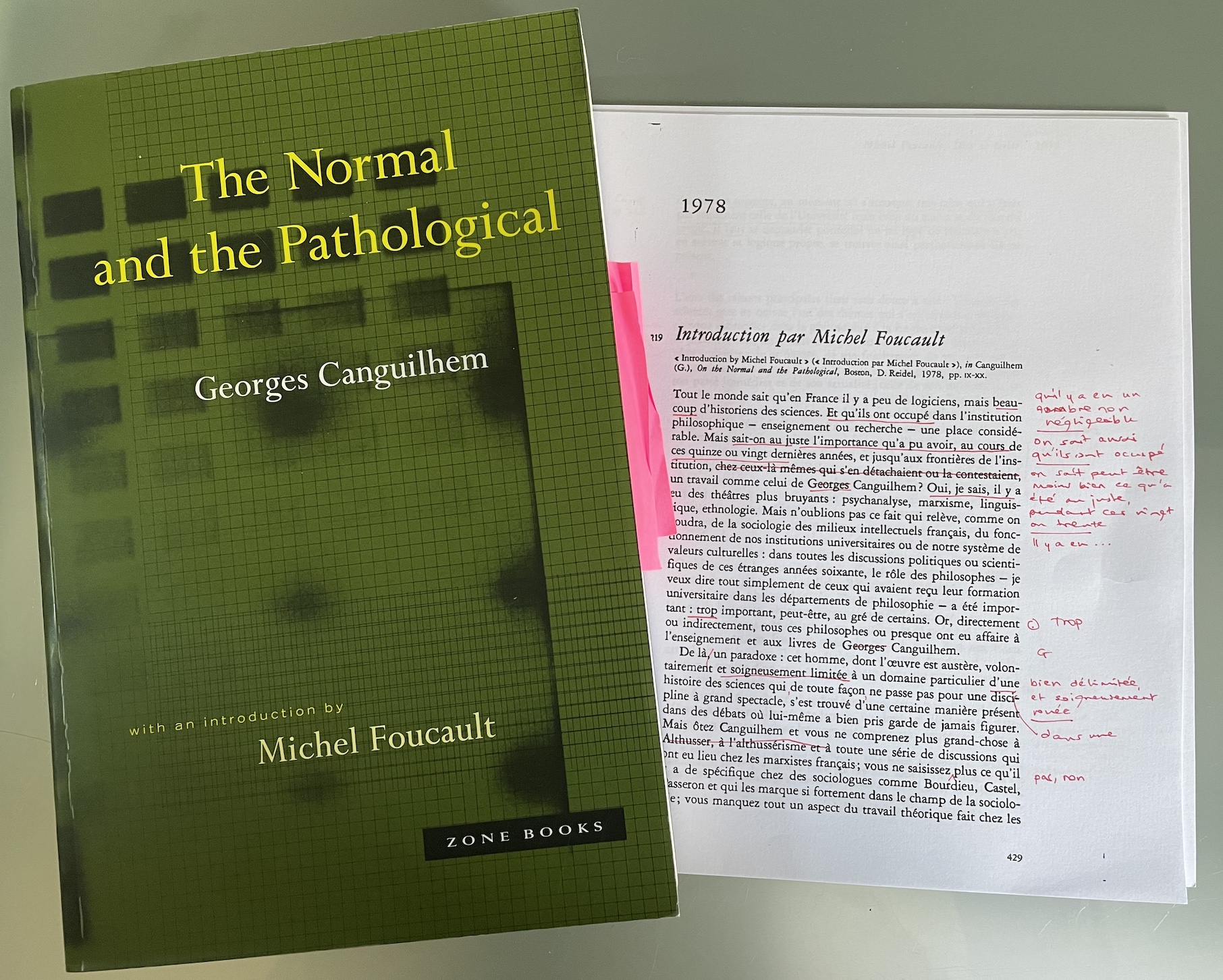 In 1978, Foucault contributed an introduction to the English translation of Georges Canguilhem’s The Normal and the Pathological. The French version is included in Dits et écrits as text 219. (No translator is indicated, which suggests the editors had access to the original French text.) Right at the end of his life, Foucault revised the text for a theme issue of Revue de métaphysique et de morale, published after his death and reprinted as Dits et écrits text 364. An online version of the latter is here. The second text was translated in Essential Works as “Life: Experience and Science”, Vol 2, 465-78.